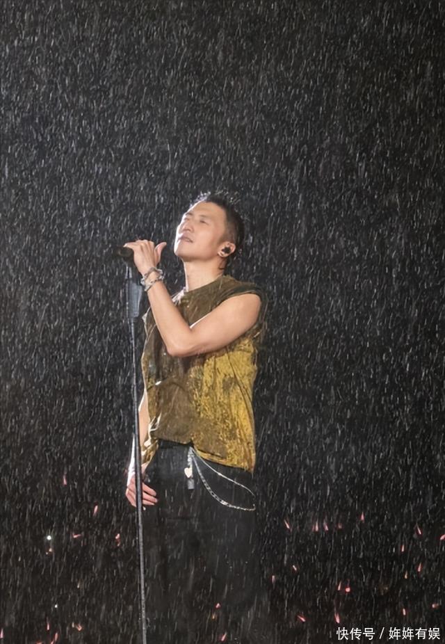谢霆锋在雨中连续演唱多首经典歌曲。 包括《因为爱所以爱》《谢谢你的》等代表作。